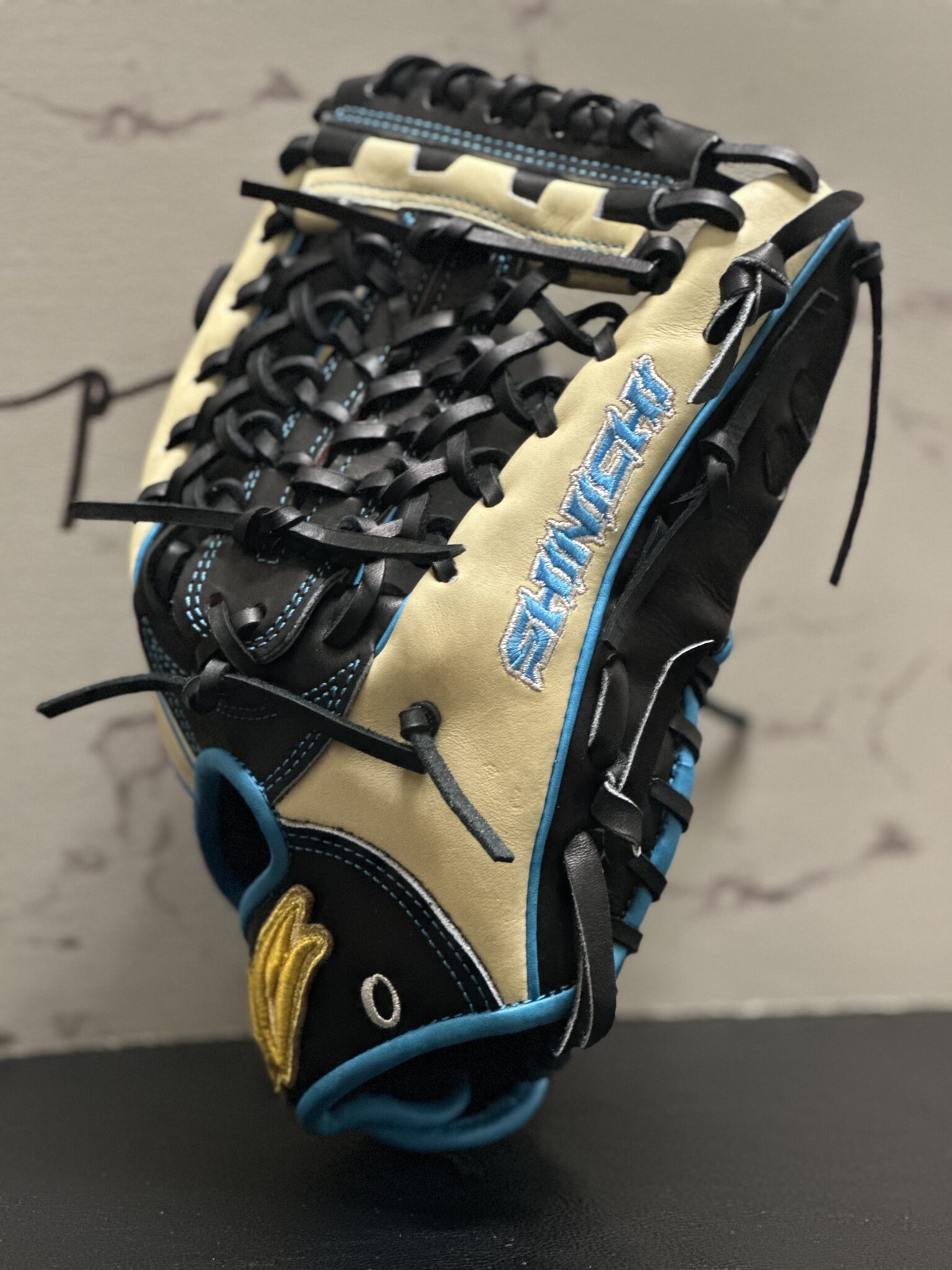 黒、キャメル、スカイブルーが絶妙なバランスで配色されておりオシャレ鮮やかなカラーに